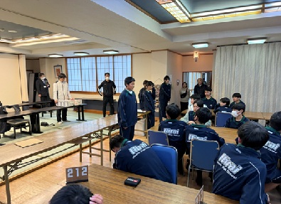 朝食をとり、最後のスキー実習も終わりました。インストラクターさんと閉講式を行いました。インストラクターの皆様、三日間ありがとうございました。