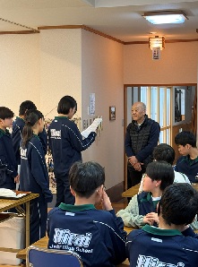 旅館で昼食をとり、いよいよ退館式です。二泊三日のスキー宿泊学習も終わろうとしています。旅館の皆様、三日間ありがとうございました。