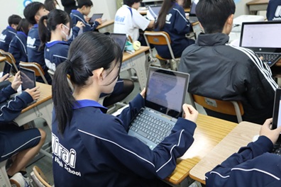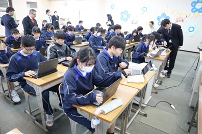 本日4時間め、2年C組で英語科の授業公開がありました。県と市より講師の先生を招きし、AIを活用した授業を参観していただきました。生徒の皆さんはスクールAIを活用して、一人一人に合った学習を進めることができました。AIとの「スモールトーク(簡単な英会話)」では、生徒の皆さんは間違えることを恐れずに、進んでAIと英会話を行っていました。県の指定を受けてのAI活用推進事業です。生徒の皆さんの学力向上につながるよう努力してまいります。
