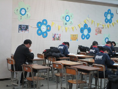 放課後、3階英語ルームを3年生の自主学習のために開放しております。数学科担当、英語科担当、教頭など教職員もサポートとして参加しております。それぞれの目標達成に向けて頑張ってほしいです。