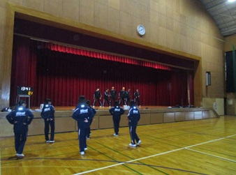 1年生、2Cの保健体育の授業では、他の学年、学級よりも早く(前倒しして実施する計画)ダンスの授業を実施しています。明日がダンス発表会ということで、5時間め、2Cの皆さんが練習をしていました。1,2年のダンスの授業では「みんなで踊 ったりする楽しさや喜びを味わう」、「ダンスの学習に積極的に取り組み,仲間のよさ を認め合うことなどに意欲をもつ」など、ダンス技能の向上だけでなく、授業での「交流」を通して、よりよい人間関係づくりを行う要素も含まれています。頑張ってほしいです。