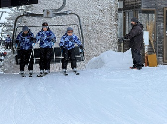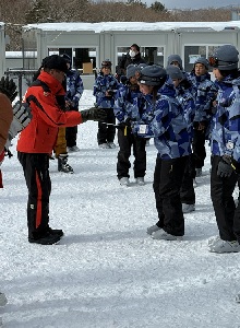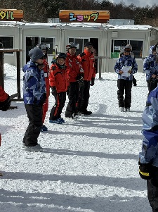 朝食をとり、最後のスキー実習も終わりました。インストラクターさんと閉講式を行いました。インストラクターの皆様、三日間ありがとうございました。