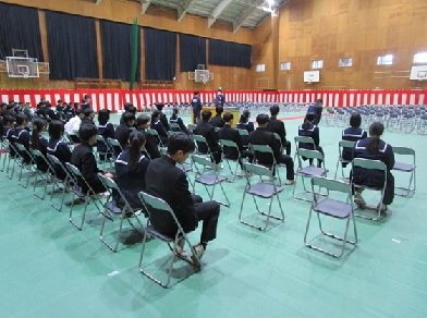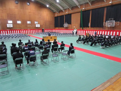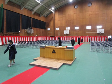 本日の午前中、体育館で3年生が卒業式の練習を行いました。昨日、2年生が会場を設営しました。2年生の生徒の皆さん、先生方、ありがとうございました。今年は卒業式の会場の形態を、昨年度とは違う形にしてみました(3年生の先生方を中心に卒業生と保護者様のことを考えて変更してみました。)。今週中に会場図と卒業式の際にご留意願いたいことなどを、学校メールで本校保護者様に送信させていただく予定です。