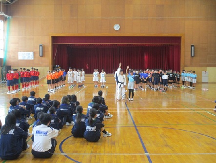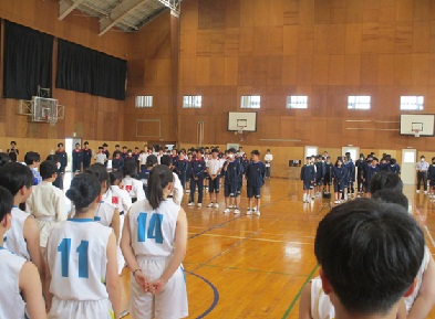 本日の6時間めに県東地区新人戦激励会が行われました。各部活動ともに3年生が引退し、新チームで臨む大会となります。各部活動の抱負の一部を紹介いたします。部員(生徒)の皆さんには、お互いを支えあい、助け合い、試合に臨んでほしいです。保護者の皆様、送迎やお弁当など大変お世話になります。