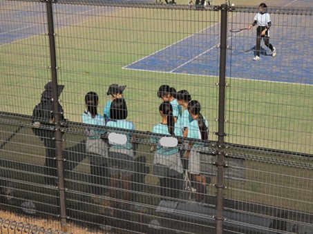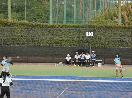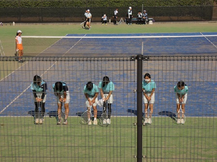 〇(女子)ソフトテニス部:新チームになり人数が少なくなってしまいましたが、日々の練習に緊張感をもって取り組んできました。団体戦の目標はベスト8に入ること、万全な役割を果たすことです。個人戦では3ペアがエントリーしており二日めに進むことを目標にしています。試合ではミスしてもお互いを責めるのではなく励まし合ってプレーしていきたいです。最後まで諦めずいい試合にしていきたいです。