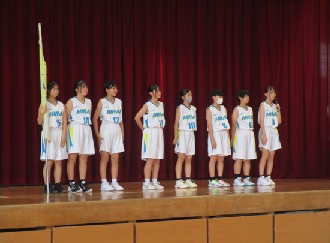 〇女子バスケットボール部:声を出して最後まで一生懸命頑張ります。そして、速攻を意識したプレーや冷静な判断、リバウンドや自分たちの強みいかし、そして、相手のペースに合わせずプレーをしていきたいです。
