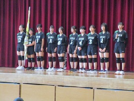 〇女子バレーボール部:新人戦で二日めに行くことが目標です。セッターは速いボールをカットし、スパイカーの打ちやすいトスをあげ、ライトは一本めをしっかりカットして、セッターがスパイカーに打ちやすいレシーブをあげられるようにしたいです。レフトもスパイクを決められるように頑張ります。センターもカットやエッジを頑張ります。いい雰囲気で試合ができるようみんなに声を掛けていきます。