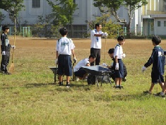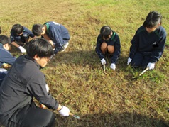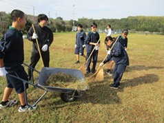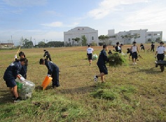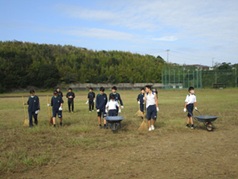 本日の午前8時から9時30分まで、PTA奉仕作業が行われました。これまでは土日に部活動の練習が可能でしたので、奉仕作業に部活動で参加しその後練習という形で実施していましたが、部活動の地域移行(展開)に伴い、今回の奉仕作業より、生徒の皆さんは自由参加にすることにしました。20名以上の生徒の皆さんが草刈りや草運びを、また、保護者の皆様は、刈払機で草を刈ったり、鎌で草を刈ったり、刈った草をまとめ運んでくださったりしてくださいました。ありがとうございました。今日を機に、生徒の皆さんが安全に体育の授業や部活動で利用できるグラウンドとなるよう、学校でも定期的に除草してまいります。本日はありがとうございました。
