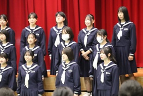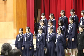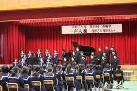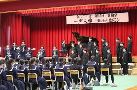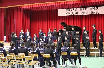 本日、令和7年度蒼輪祭が行われました。蒼輪祭の「蒼」は、平井のあおい海やすがすがしい空を表し、「輪」には、生徒の皆さん一人一人が協力し合い、手を取り合って「生徒の輪」、「地域の輪」を広げていきたいという願いが込められています。体育館1階には生徒の皆さんや美術部の作品が展示されました。体育館2階では合唱が行われました。企画運営を行った実行委員の皆さん、合唱を成功させるために指揮や伴奏を引き受けてくれた生徒さん、そして、全生徒の皆さん、来場してくださった保護者の皆様、本当にありがとうございました。