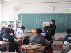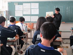1月24日から本日1月30日まで「全国学校給食週間」となっています。日本の学校給食の歩み等について、給食担当教職員が生徒の皆さんに説明しました。もともとは12月24日を「学校給食感謝の日」としていましたが、冬休みと重ならない1月24日から1月30日を「学校給食週間」としたとのことでした。学校給食は、子どもたちが食に関する正しい知識と望ましい食習慣を身に付けるために重要な役割を果たしています。今回は短い時間ですが、学校給食の意義や役割について、生徒の皆さんと確認ができてよかったです。