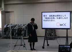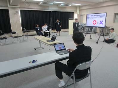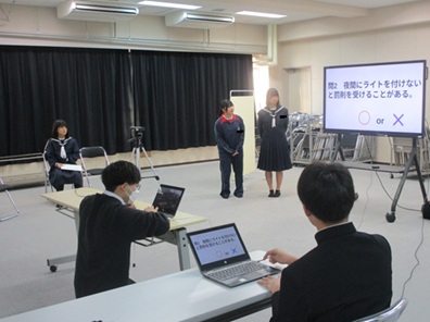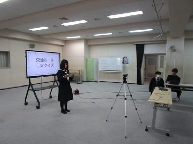 本日の朝の時間に生徒朝会が行われました。交通安全委員会より、交通安全についての〇×クイズや、ヘルメットやタスキの重要性、また、生徒さんだけでなく、先生方へも車を運転する際に気を付けてほしいことなどの提案がありました。更に、交通安全を啓発するポスターも作成してくださいました。交通安全委員会の皆さん、ありがとうございました。