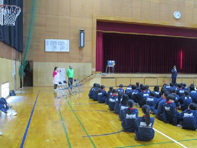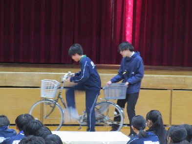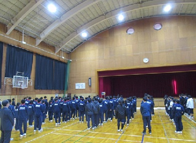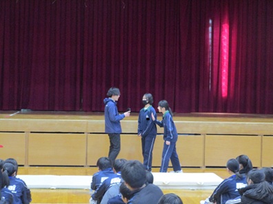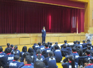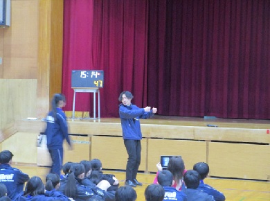 本日の午後、鹿島警察署から3名の方々をお招きし、本校保健主事(養護教諭)が企画・運営の「避難訓練」、「防犯教室」が実施されました。不審者侵入時の生徒、教職員の動きや対応を確認しながら、迅速な避難を心掛けました。防犯教室では、生徒会本部役員が警察署員の方々と実演を行い、それを全生徒、教職員とで見ることで、具体的にどのような行動をとることが最善かを学ぶことができました。鹿島警察署員の方々、生徒会本部役員の皆さん、全生徒の皆さん、企画・運営した保健主事(養護教諭)の先生、ご協力ありがとうございました。