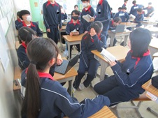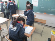 大雪等による臨時休校と祝日が続いたため、後期期末テストが本日、明日の実施となりました。昼休み、3年生は教室でテスト勉強をしていました。現在、茨城県立、千葉公立高校共に志願先変更期間となっています。進路決定に向けて頑張ってほしいです。
