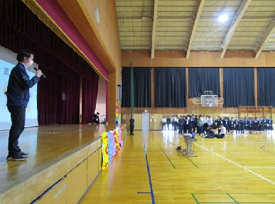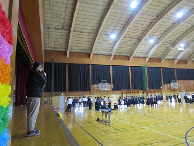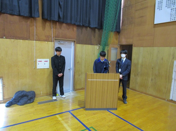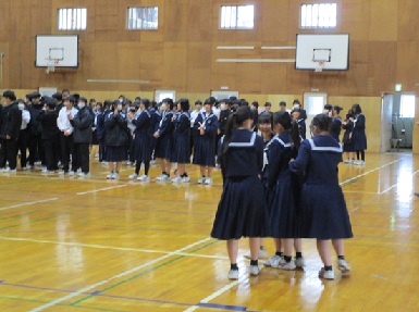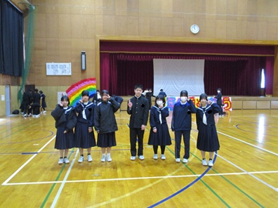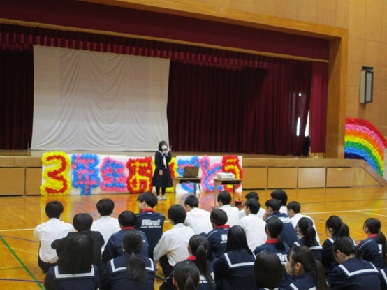 本日の2、3時間めに3年生を送る会実行委員(1,2年生)企画の「3年生を送る会」が行われました。〇×クイズや在校生からのメッセージムービーや3年間の思い出のムービーなど、全校生徒でゆったりと過ごす時間は、これが最後かなと思いました。クラスのメッセージ(スライドや渡り廊下の掲示物)を作成してくださった生徒の皆さん、会を企画・運営された実行委員の皆さん、ありがとうございました。また、ムービー作成等へ携わった先生方、ありがとうございました。3年生の皆さん、残り6日間の学校生活(一日一日)を大事にしてください。