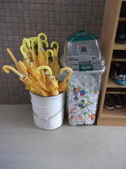 | 年度初めより行っていた「エコキャップ 運動」ですが,今日の朝会の最後に,児 童会より終了の連絡が行われました。 これまでのご協力,大変ありがというご ざいました。 ※画像は本日の容器の様子です。 |