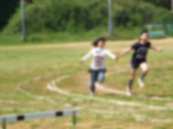 | 元気に外遊び,中には中学生と一緒に遊ぶ児童も・・・ | |