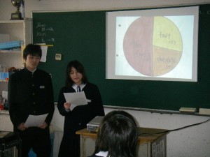 生徒たちはインタビュー後,結果をグラフにかいて,発表原稿を英文で作成しプレゼンしました。