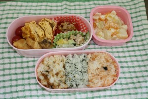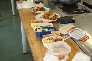 3年生の選択家庭科では,今年もいばらきものづくり教育フェアの「あなたのためのおべんとうコンクール」に応募しようと思っています。 授業の中で,自分たちで考えた一品一品を練習してきました。 今日は,半日かけてお弁当を作ります。 さあ,できた!! 誰先生に試食お願いしようかな???