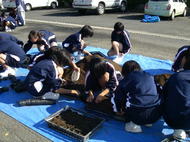 「パイナップル,ピーチ,ラズベリー・・・」準備した種にはかわいい名前がついていました。きっと新校舎でかわいらしい花を咲かせてくれることでしょう。