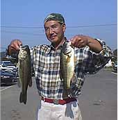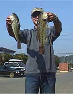 ![]() イメージmidです。 11月15日天気晴れ、水温15度、 98muddysSuperBASSTournamentの最終戦です。 11月に食い込んでのトーナメント、近ごろの釣果には各大会において各自釣れる選手と 釣れない選手の差がハッキリ分かれていまして上位は数グラム単位の接戦、 ですが以下下位になるにしたがい、そのグラム差が大きくなっていきました、 「このひとが?」と思うひとがコケテしまったり、と言うのが結構ありましたね、 今大会も例外で無く、上位はキロフィッシュの連続で接戦が強いられたようです。 98 最終戦は年通して安定した成績を維持し 青木選手が98チャンピオンに輝きました。最終戦優勝は高橋選手! 百目鬼選手との一騎討ちとなった沼尾検量所、虫の生きとナイスなバスを持ち百目鬼選手が 検量に駆け込んだ、その直ぐ後、高橋選手良型のバスを3本をゲット!一気にトップに出た! 「ちょっと待って!」と百目鬼選手、次に持ち込んだバスに高橋選手ちょっと慌てる、 「さっきだけじゃないよ、まだあるね」差し出したのは良型のバスが3本、 がしかしワズカ9グラム差で優勝に手が届かない、高橋選手が逃げきり本年度2勝と 素晴しい成績、でもチャンピオン届かず残念!「初戦、3戦がとても悔やまれます。」 優勝は高橋昌樹選手!2086「1063+1023」