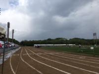 まだ、雨が降っていますが、 児童はテント内で整列しています。