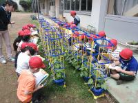本校では,校内の花壇や畑でいろいろな植物を栽培しています。理科室前の花壇では,アサガオの双葉をたくさん見ることができます。夏には,青い花をたくさん咲かせることでしょう。