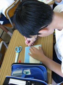 今日も暑い一日でした。五年生の教室では、子どもたちが一生けん命に家庭科の「小物作り」に取り組んでいました。裁縫セットを使うことにも慣れ、生き生きと活動している様子が見られました。どんな作品ができあがるか、今からとても楽しみです♪