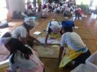 みんなで力を合わせて、うどんづくりをしています。9時50分