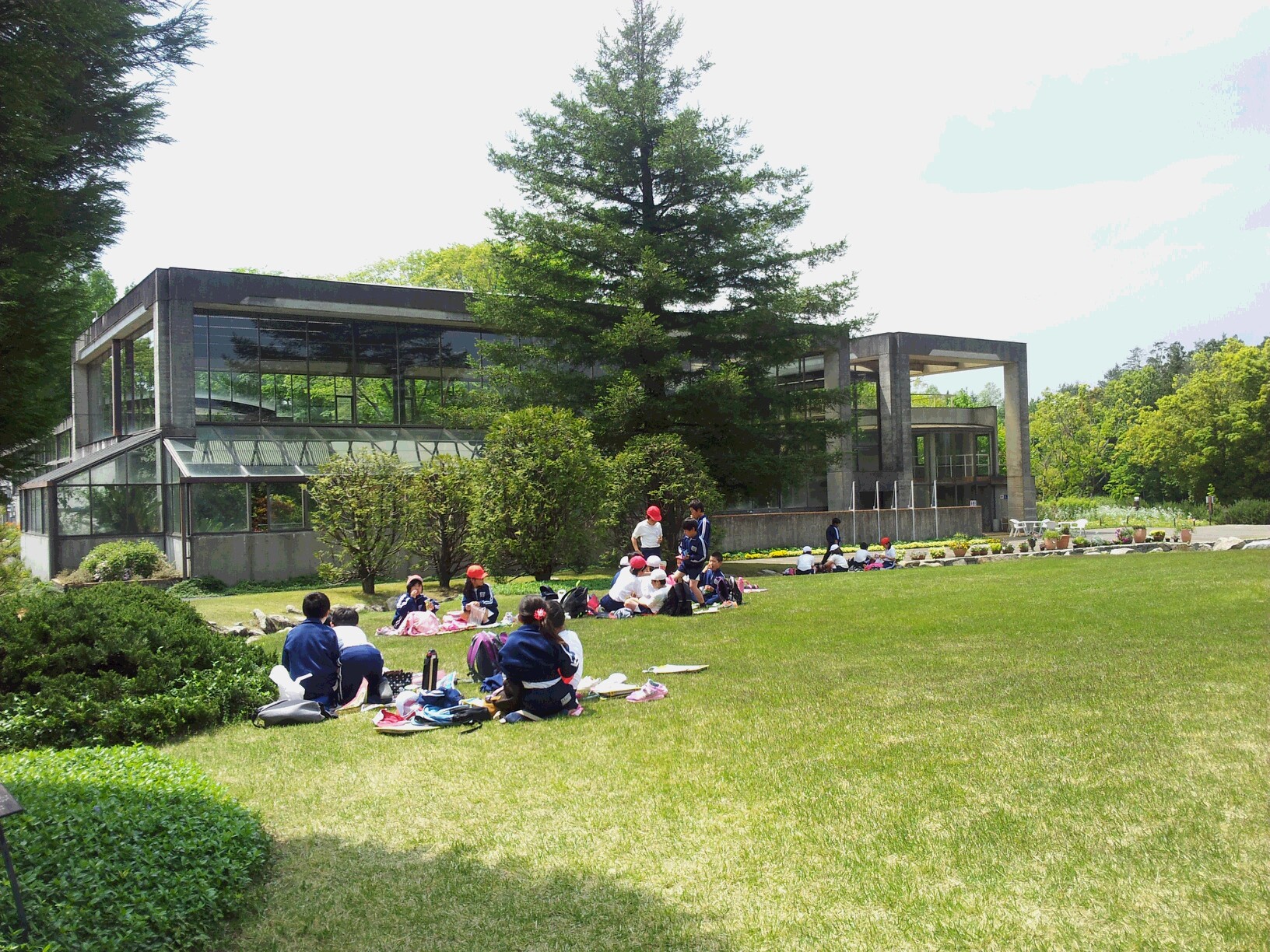 植物園での活動中、雨に降られました。予定よりもはやく出発しました。