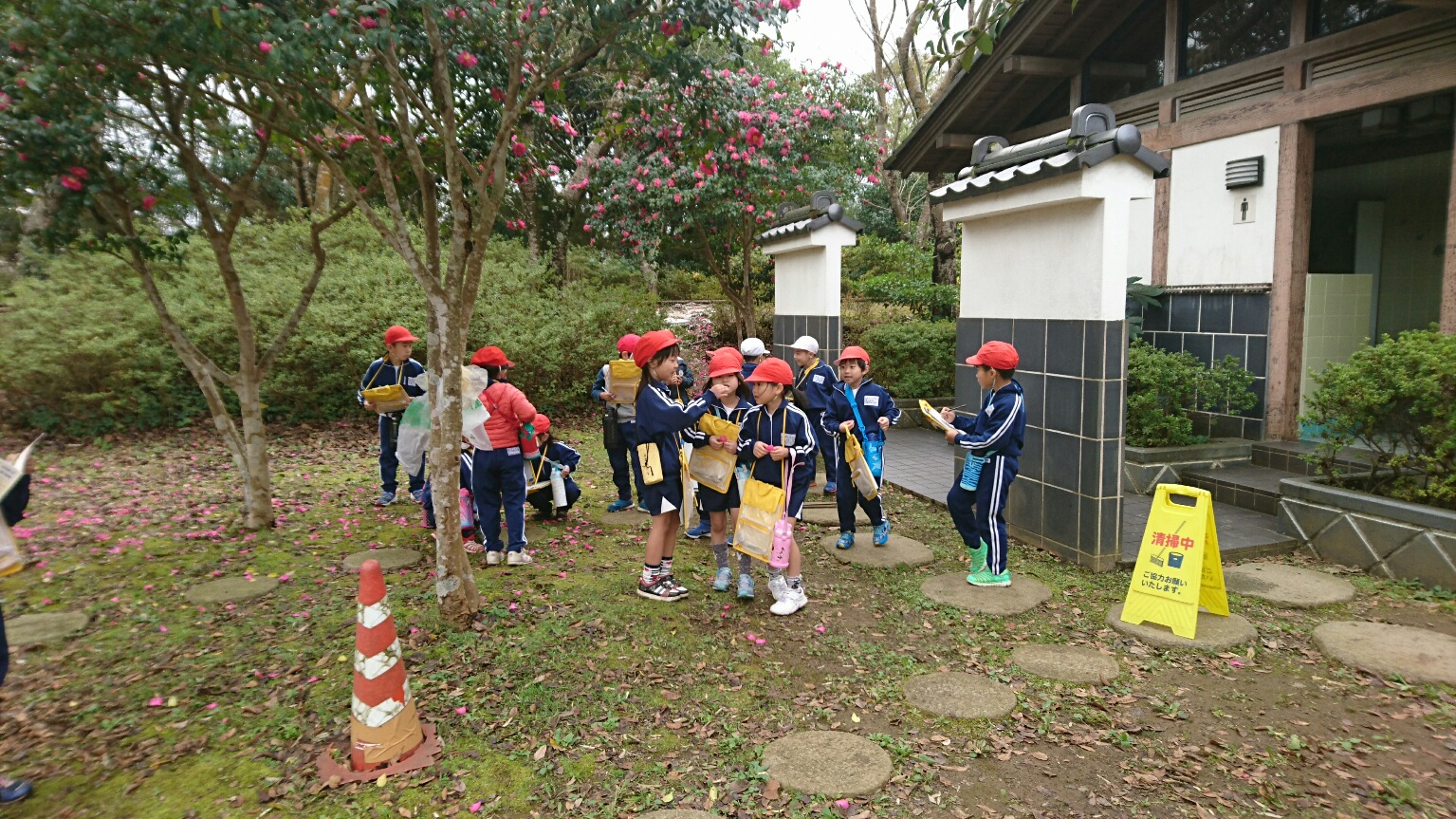 城山公園に持久走大会の下見に行きました。みんなで新しいコースの確認をしました。説明を聞き、元気に歩くことができました。