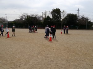 10月31日 金曜日 外国語活動をグラウンドで行いました。 カードを見て指示通りに動くと,お店・病院などにたどり着きます。 小さな街中を楽しそうに巡る6年生。