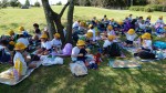 子どもたちは芝すべりを自由に楽しんでいます。 芝すべりや、遊具遊び