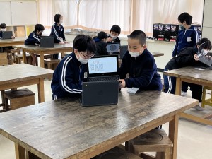 本日4年生による,オンラインを通しての交流学習が行われました。 パソコンを通して,海外の方との交流を行い,自分の好きなものについて紹介する活動を行いました。