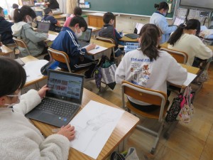 本日「版画」の学習を行ないました。自分の好きな動物の写真をChromebookを使って探し、どのように彫刻刀で表現するのかを考えながら下書きを行ないました。 1月になりました。1年生は、体育の時間になわとびに取り組んでいます。 前とびや後ろとび、あやとびなどを一生懸命練習しています。 縄跳び検定の日が楽しみです。