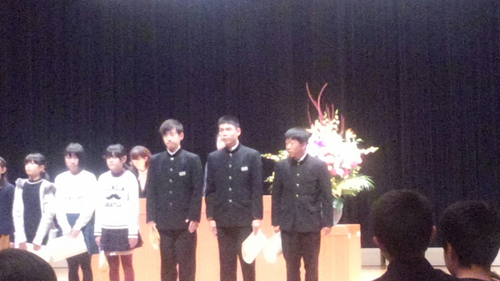 19日に行方市善行青少年表彰があり麻生中からは三年生の男子三名が表彰されました。