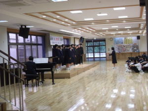| 今日は,先週の台風26号のために延期になった「2学期中間テスト」が1週間遅れで実施されました。朝自習の時間から5校時終了まで,どの学年もテストに向けて取り組む姿は,緊張感に満ちあふれていました。テスト終了後の6校時からは,来月に迫った合唱コンクールに向けての歌声[3学年]が,1階多目的ホールに響きわたり,それまでの緊張した雰囲気から癒しの空間へと変えるものでした。合唱コンクール[文化祭]を11月9日(土)に控え,これから校舎内には今以上に各学年学級の歌声が響き渡り,私たちの心も癒してくれることでしょう。 |