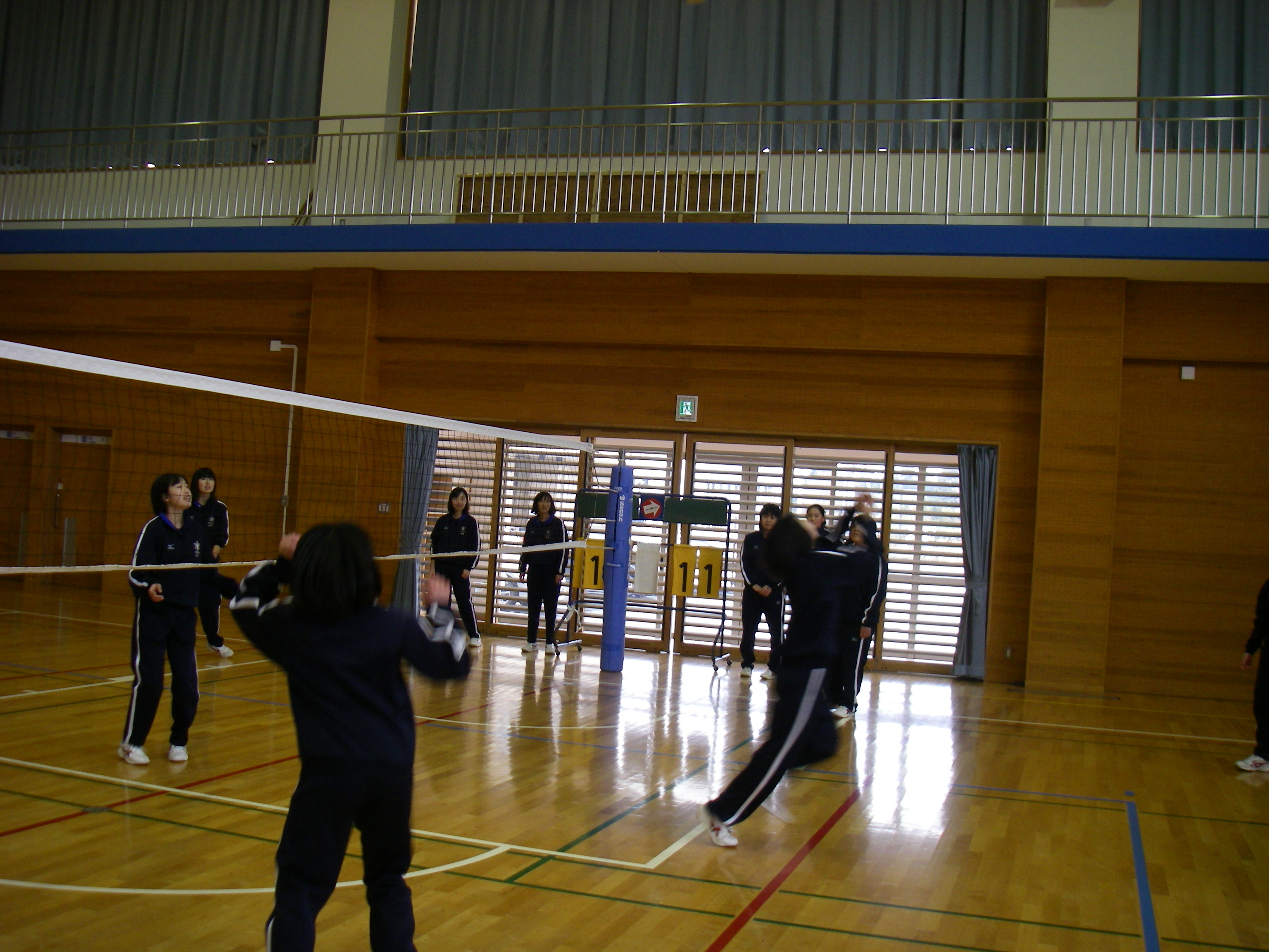 体育の授業でバレーボールを行いました。みんなで声を出し、つないで攻撃!チームワークばっちりです!!