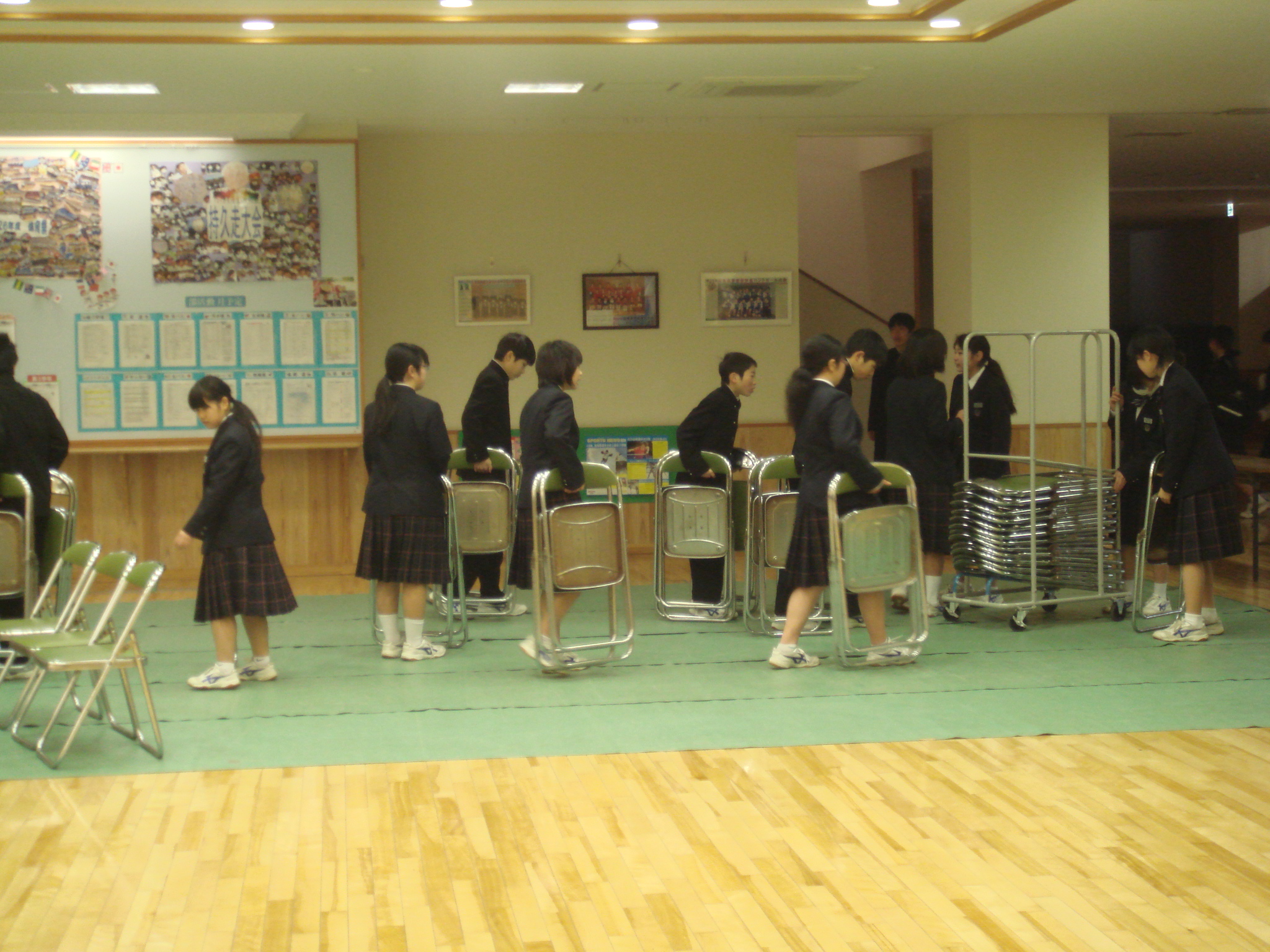 登校後すぐ,2年生や吹奏楽部員を中心に,前日行われた講演会の椅子を進んで片付けてくれた。お互い