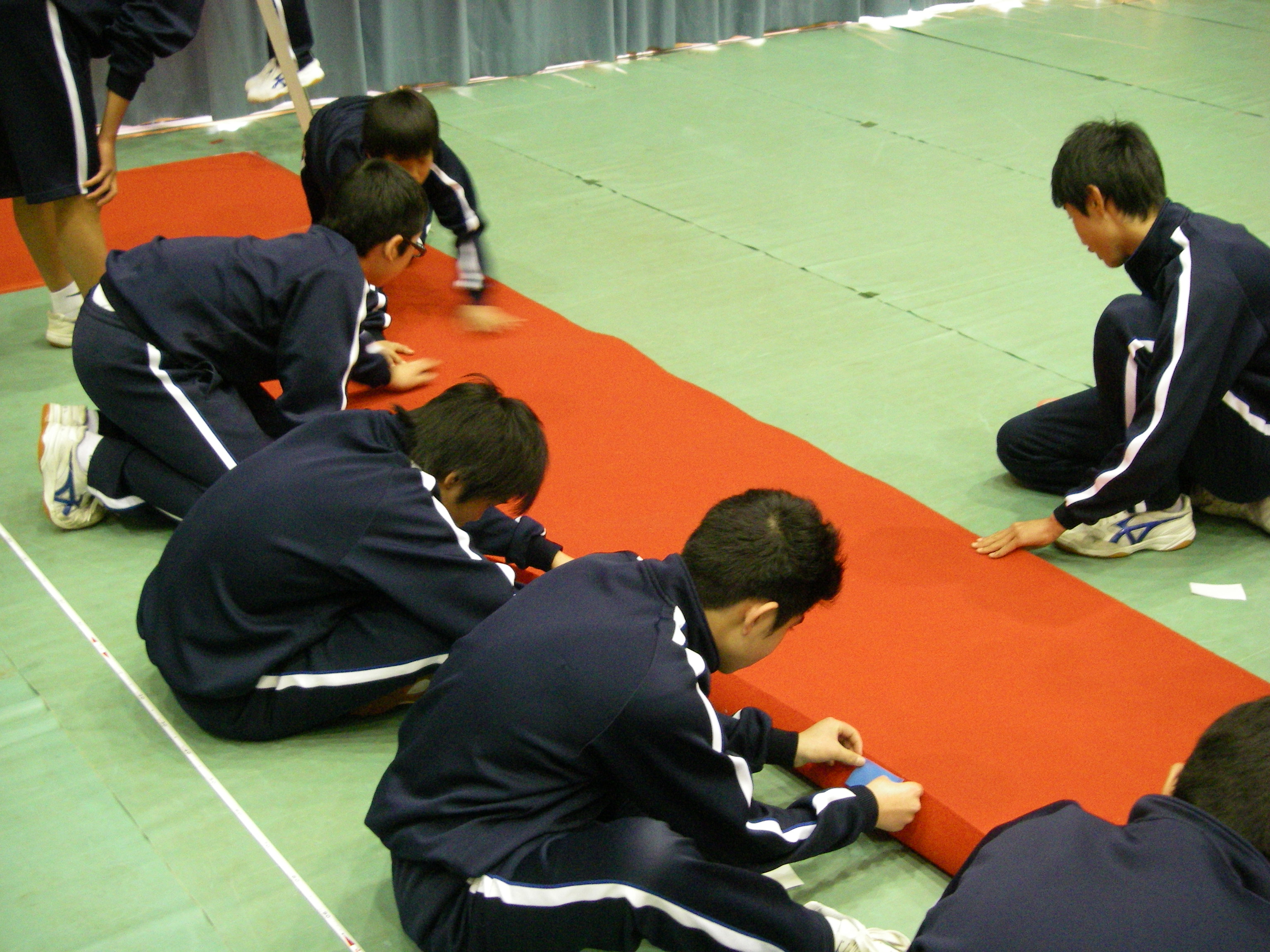 本日,5・6校時に1・2年生で卒業式の会場準備をしました。体育館内