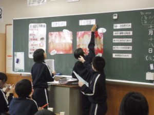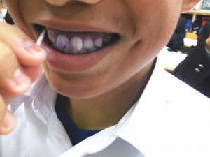 月曜日の1年生に引き続き,本日昼休みに,2年生を対象にした「歯みがき指導」が行われました。各自,ブラッシングの後に染め出し検査を行い,自分の歯みがきの仕方を振り返ることで,正しい歯みがきを行い,虫歯予防につなげようというものです。今回の取り組みを契機に,ご家庭でも見直してみてはいかがでしょうか。