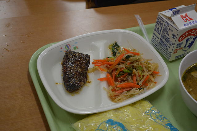 今日の給食は,諸事情によりメニュー変更がありました。特に2年生は4クラスとも「違うおかず」となりました。どのクラスもそれぞれの味を堪能することができたようです。