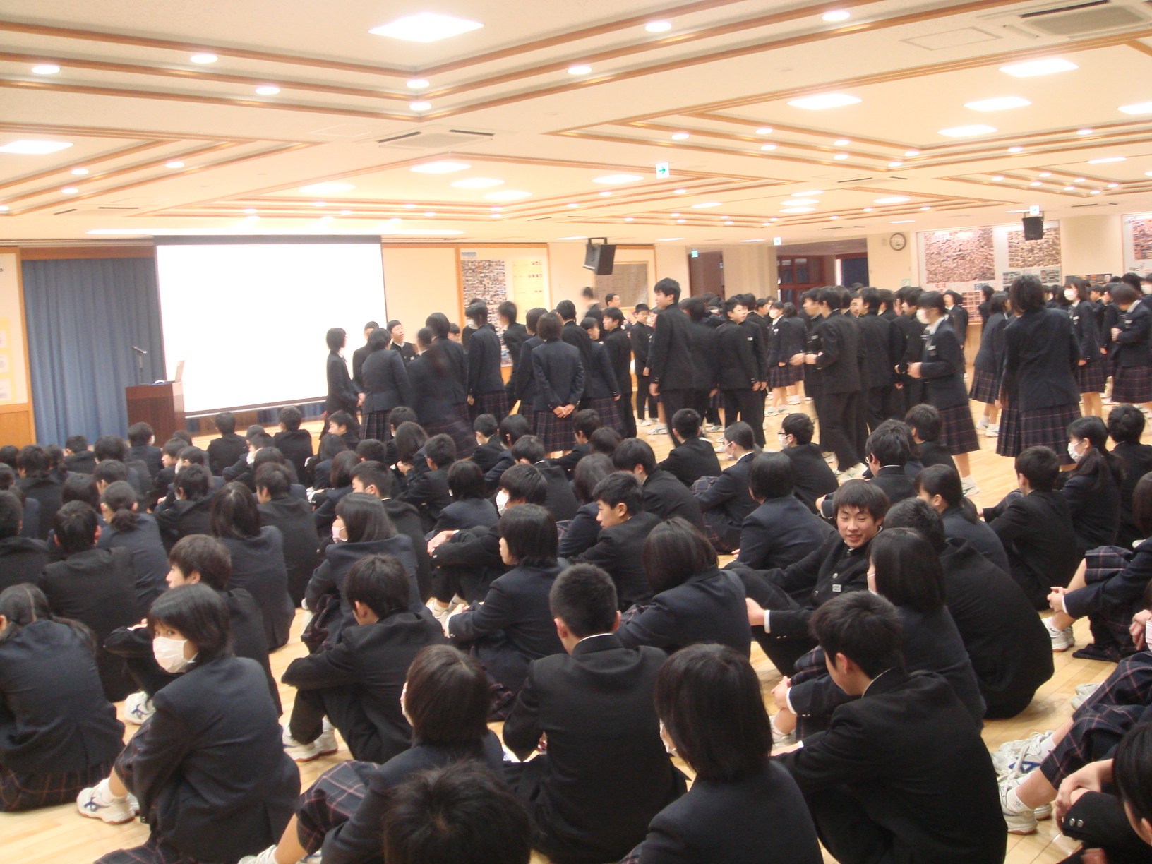 8時10分から全校朝会でした。3年生は8時頃から集まり始め,8時5分には整列して着席し,下級生が整列できるまで静かに待っていました。3年生が見本となり,よき伝統を1つ1つ作り上げています。