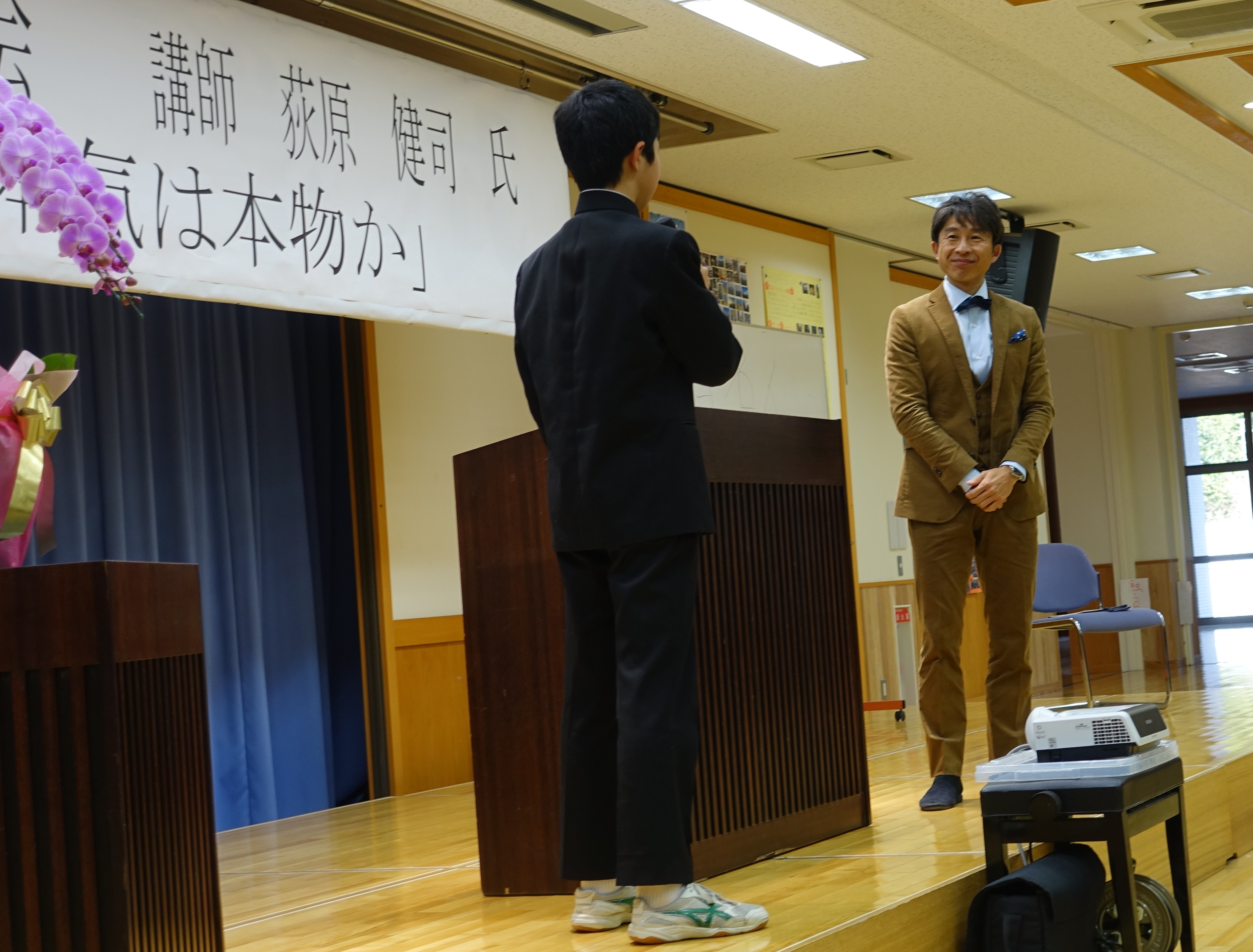 元ノルディックスキー複合選手の金メダリストの荻原健司さんをお招きして,PTA教育講演会が行われました。生徒からの質問にも丁寧に答えていただきました。