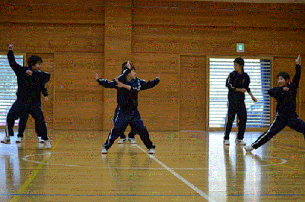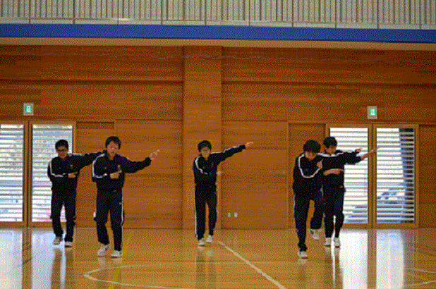 本日は1・2年生男子の体育で,ダンス発表を行いました。 グループごとに工夫した振り付けや,決めポーズもあり,踊っている生徒だけでなく,見ている生徒もとても楽しそうでした。