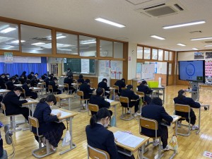 本日は1,2年生で学力診断のためにテストの2日目が行われました。勉強の成果を発揮し,最後まで諦めずに取り組んでいる姿がありました。