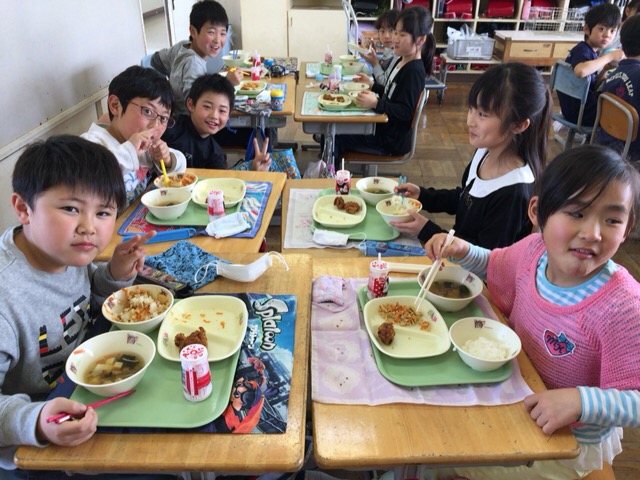 29年度第1回目の給食訪問は4年1組におじゃましました(^^)b今日のメニューは混ぜご飯とから揚げでした。ほとんどの子が完食することができました*(^o^)/*