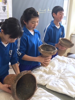 今日は鹿嶋市どきどきセンターのみなさんを講師としてお迎えして,6年生が土器づくり体験学習を行いました。