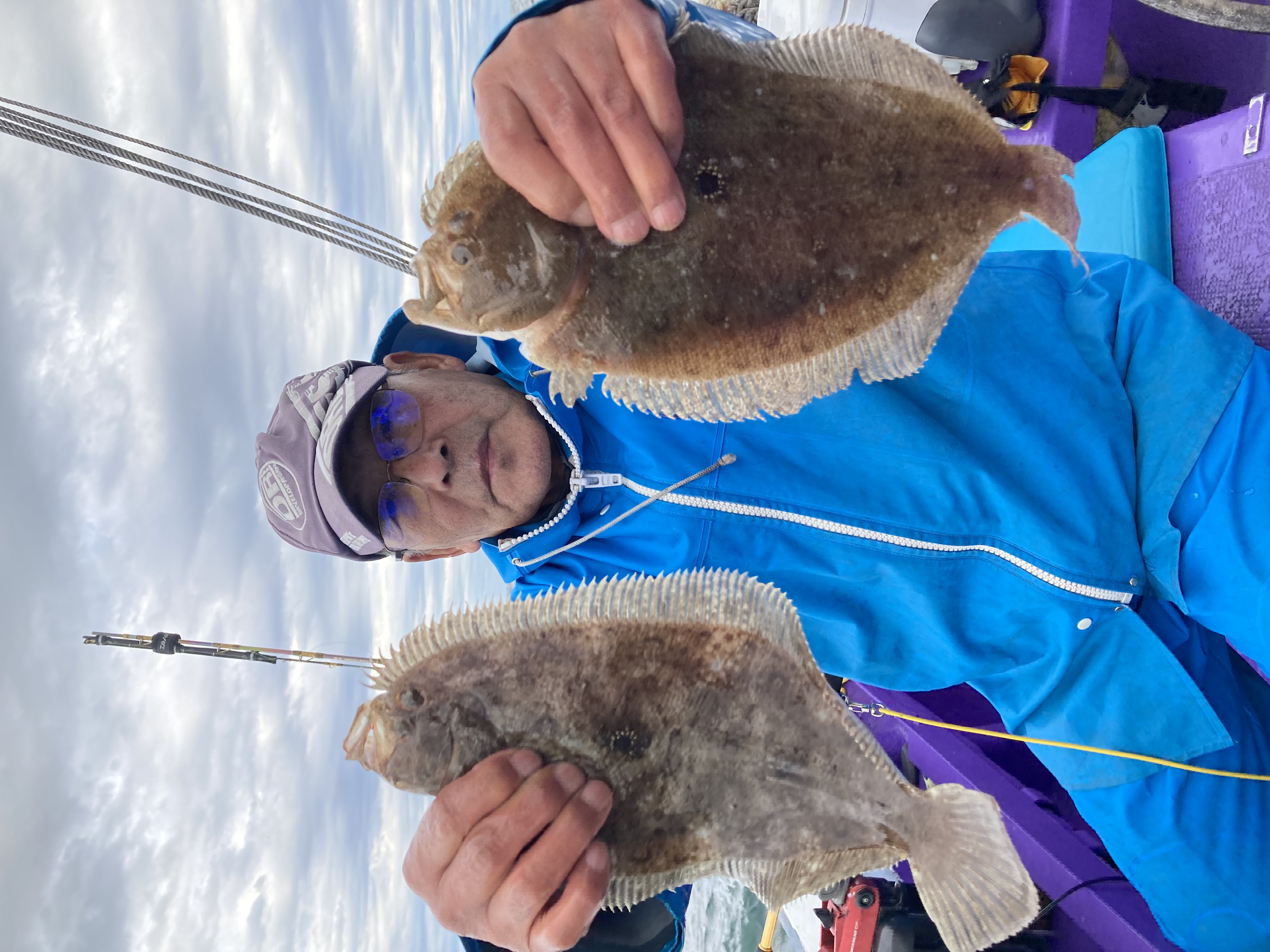 前半、海悪く苦戦しましたが、後半、近場で、大判ヒラメ、5.5キロ出ました🎵今後も型、数狙って出船します、予約受け付け中