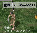 優勝者 フェイ・ルファ![]() 「ホームの熱狂的なファンに支えられ・・・」 |
