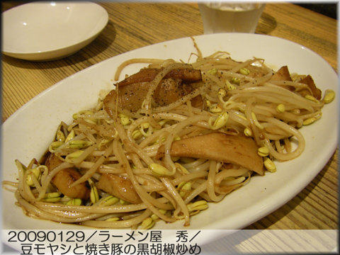 豆モヤシ〜は始めて注文しましたが、胡椒でぴりっと引き締まった味付けばんざい。旨いよ〜、豆モヤシ〜丼にしてしまいたい(ぉぃ